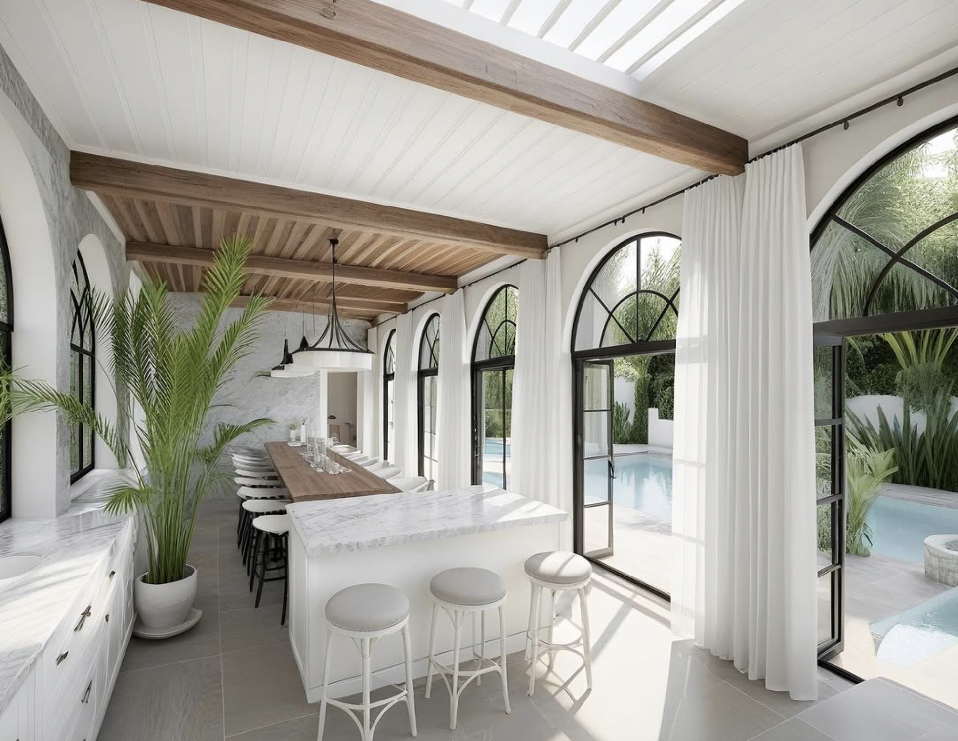 Our brief for the renovation and revival of this landmark northern beaches property was to create an updated family home that would retain the majestic quality of a bygone era. We reconfigured the internal floorplan, adding grand double-volume areas and worked with a luxurious palette of marble, brass and ebony throughout. Vast sweeping terraces and verandas give way to a beautifully appointed pool, cabana and tennis court, all contributing to the incredible lifestyle to be enjoyed by our client.
