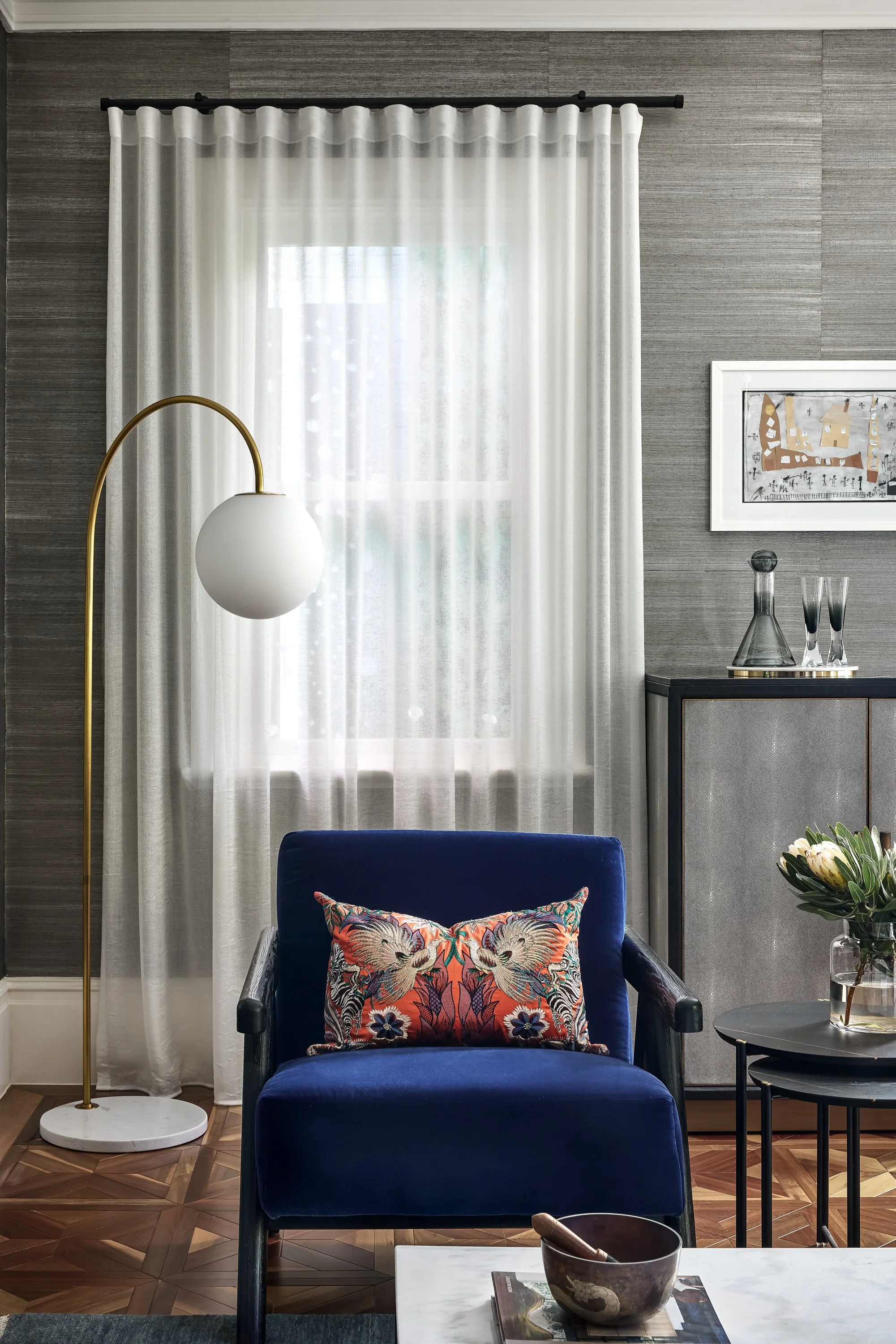 A refined use of colour and texture formed the basis for the transformation of this stunning Upper North Shore residence. The brief was to create a home that referenced our client’s experiences abroad, embodying a sense of high-end hotel luxury and comfort. The original part of the house blends seamlessly with the new addition, through a contemporary interpretation of materials and furnishings throughout. The affectionately named ‘Snug’ sits in the middle of the home, evoking the charisma of an old school gentleman’s club, while the dining and family room at the rear function beautifully as a place for family to relax and connect with one another. The master bedroom and dressing room have become places to retreat and unwind, like stepping into another world.